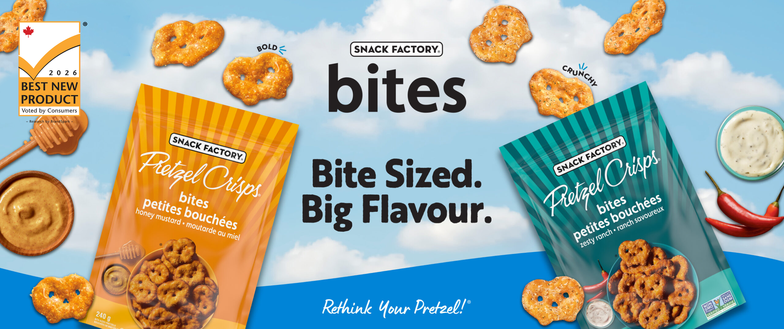 At Snack Factory®, we reimagine pretzels in new and unexpectedly delicious ways. Snack Factory® Bites bring together the crunchiness of pretzels with the thinness of chips for a snack that is deliciously satisfying! These thin and crunchy pretzel snacks are baked, not fried and come in a resealable bag for freshness. We reinvented the pretzel to create a flavorful and fun snacking alternative.